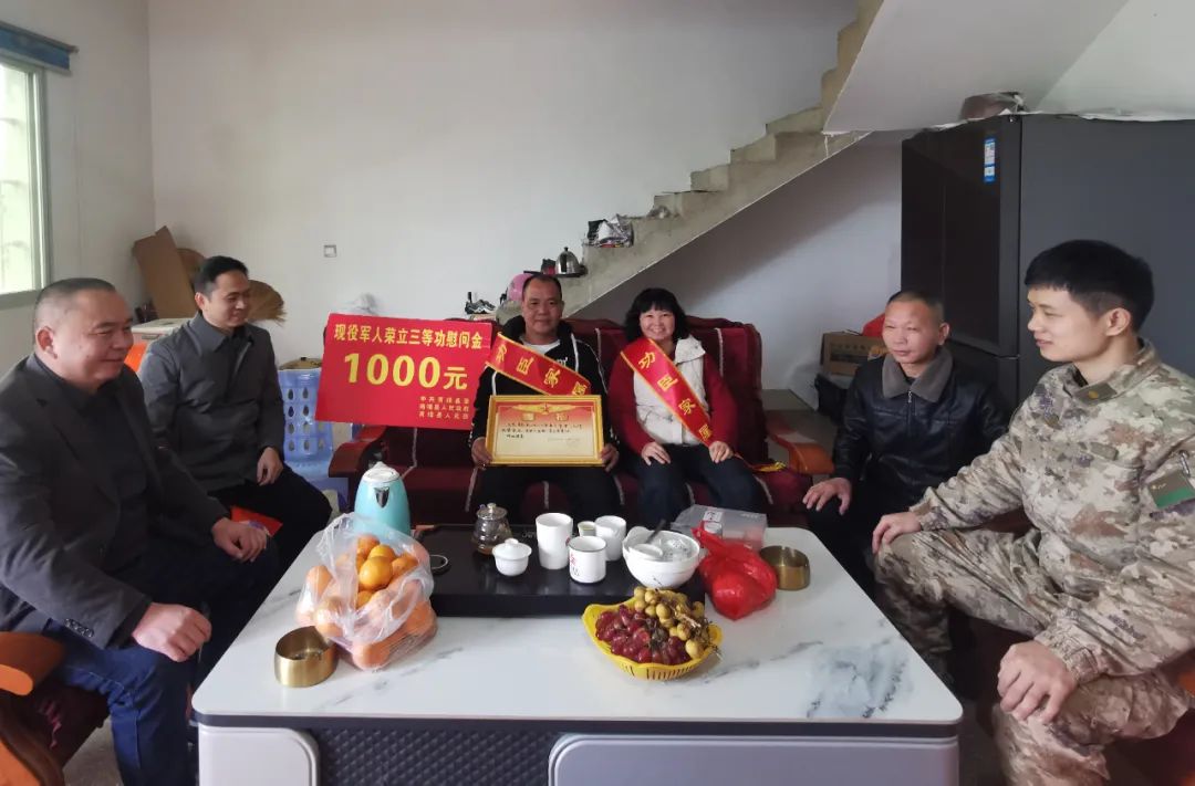 “王溪河家儿子在部队又立功啦!”1月30日,伴随着喜庆热闹的锣鼓鞭炮声,南靖县送喜报小分队来到金山镇碧溪村,为再立三等功的王杰家庭送去立功喜报和慰问金,亲属和乡亲们一起共享喜悦和荣光。