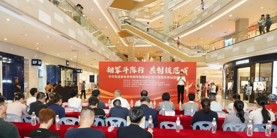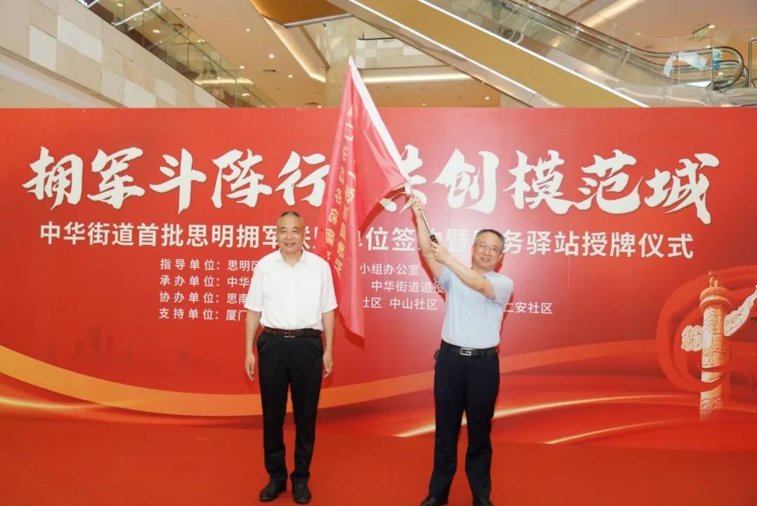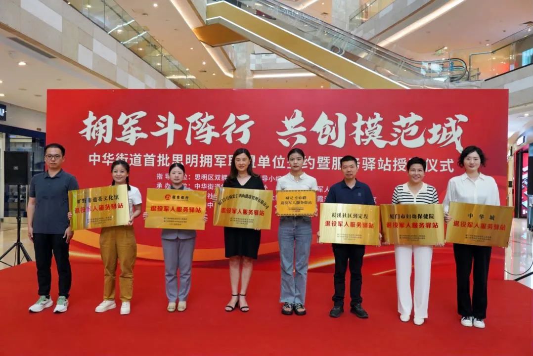 厦门市思明区中华街道新增7家退役军人服务驿站,面向全国退役军人提供优先优惠优质服务。近日,思明区中华街道首批思明拥军联盟签约暨服务驿站授牌仪式在中华城举行。