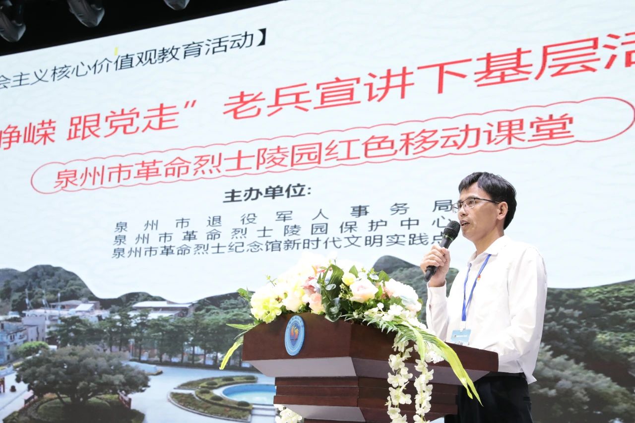 这一幕发生在泉州市革命烈士陵园红色移动课堂上。近年来该课堂先后在泉州市各学校、部队、社区、企业、机关巡回开讲,是泉州市革命烈士陵园保护中心创新红色文化宣教模式的重要举措。