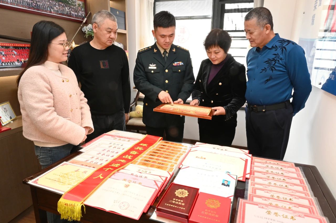 “通过军地联合开展‘喜报送家门’的形式,进一步强化广大官兵扎根军营、岗位建功的荣誉感、自豪感和使命感,持续激发官兵投身国防事业的热情动力。”现在,党和政府十分关心军人军属家庭,积极营造“一人立功、全家光荣”的浓厚氛围,当地街道、社区经常会安排工作人员到军人家庭开展走访慰问、荣誉颁授、合影留念、暖心座谈等活动,激励着他不断提升备战打仗能力,练就过硬胜战本领。