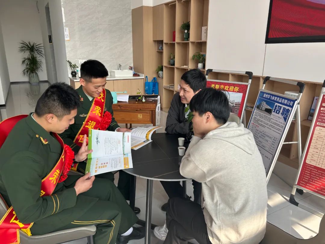 开班式结束后,举办了2025年春季退役军人就业推荐专项招聘会,为退役士兵搭建供需对接平台。企业招聘负责人积极介绍企业情况,讲解退役军人优惠待遇。退役士兵纷纷与企业代表交流,了解岗位需求,展示自己的才能和优势。此次招聘会共计10余家企业参与,有针对性地为退役士兵提供50余个就业岗位。