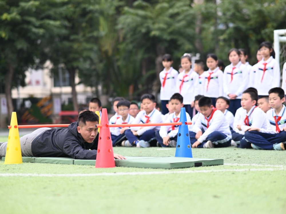 ↑“兵教师”陈翼桁在学校开展特色教学。蔡家榕摄