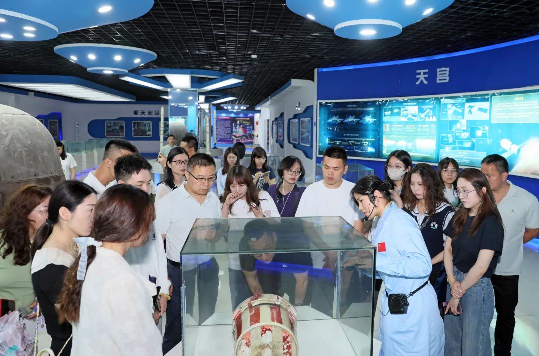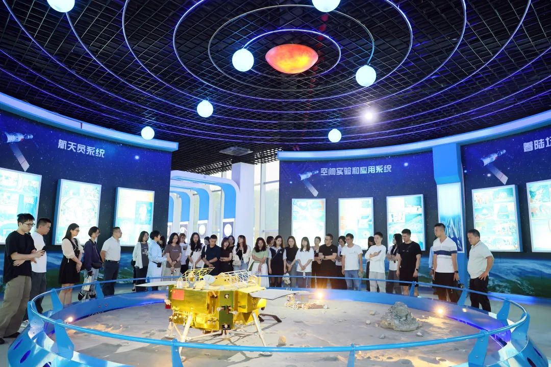 在驻厦某部航天科技馆,学员们在解说员的带领下,了解中国航空航天事业发展历程,感受“两弹一星”和载人航天精神,接受爱国主义教育。