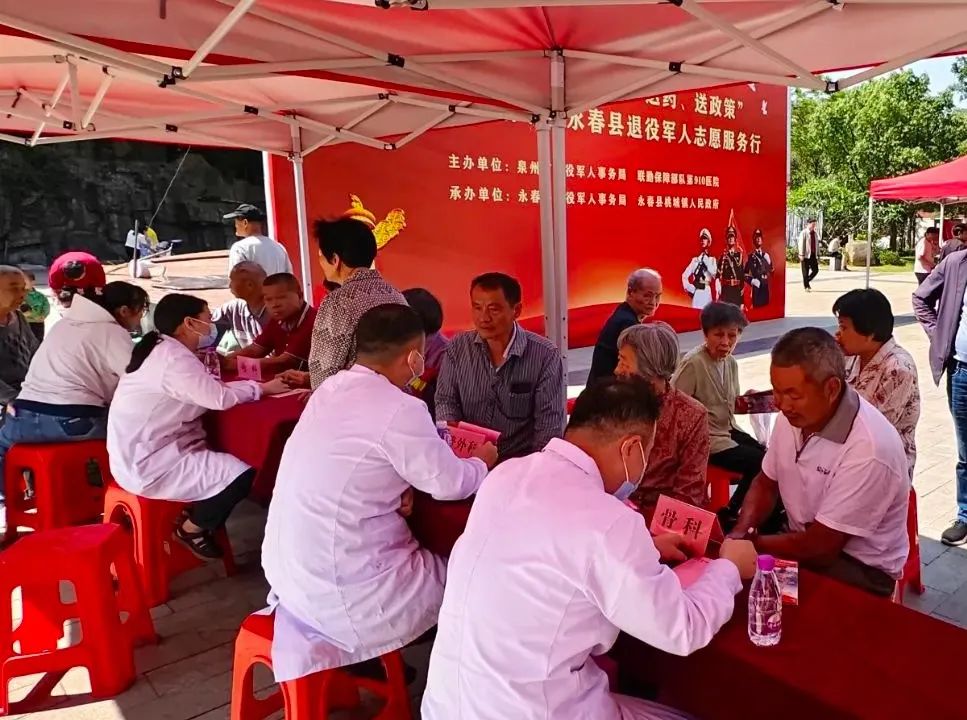 近日,泉州市退役军人事务局联合中国人民解放军联勤保障部队第九一〇医院、永春县退役军人事务局在桃城镇举办“送医、送药、送政策”三下乡活动。