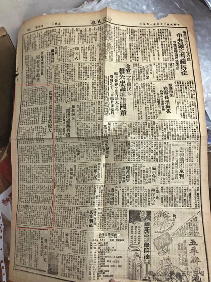 捐赠给厦门大学的1939年3月22日《福建民报》