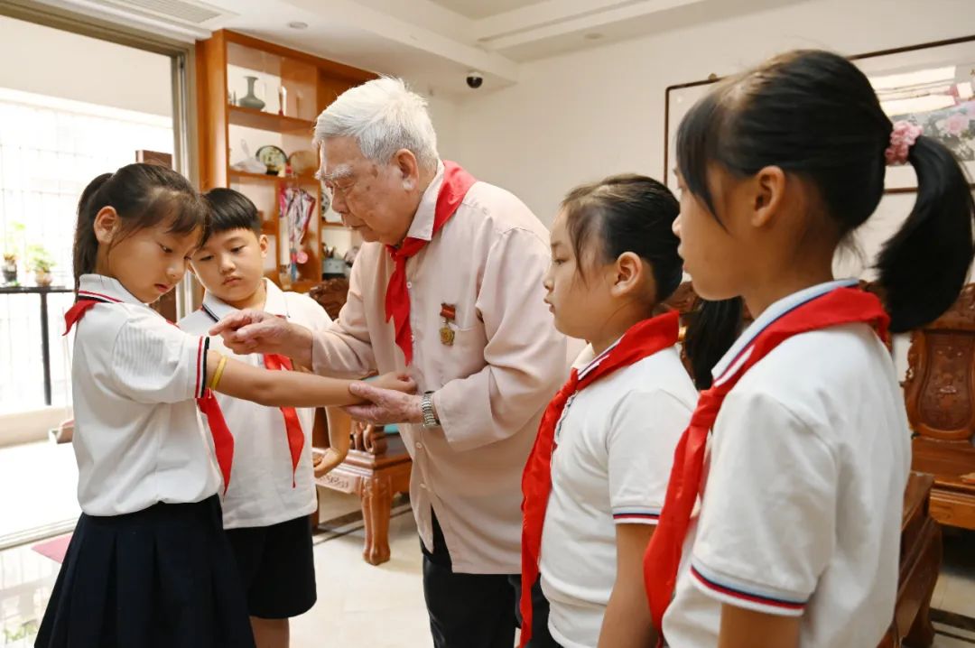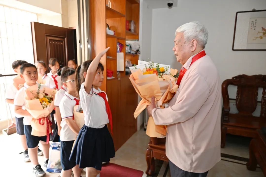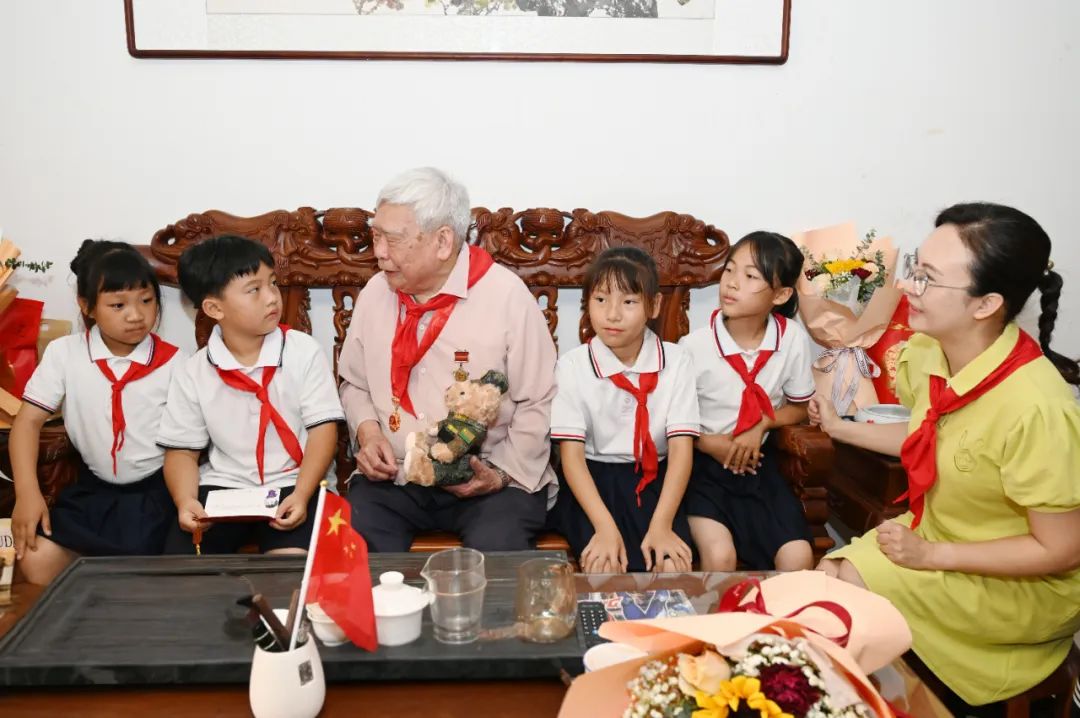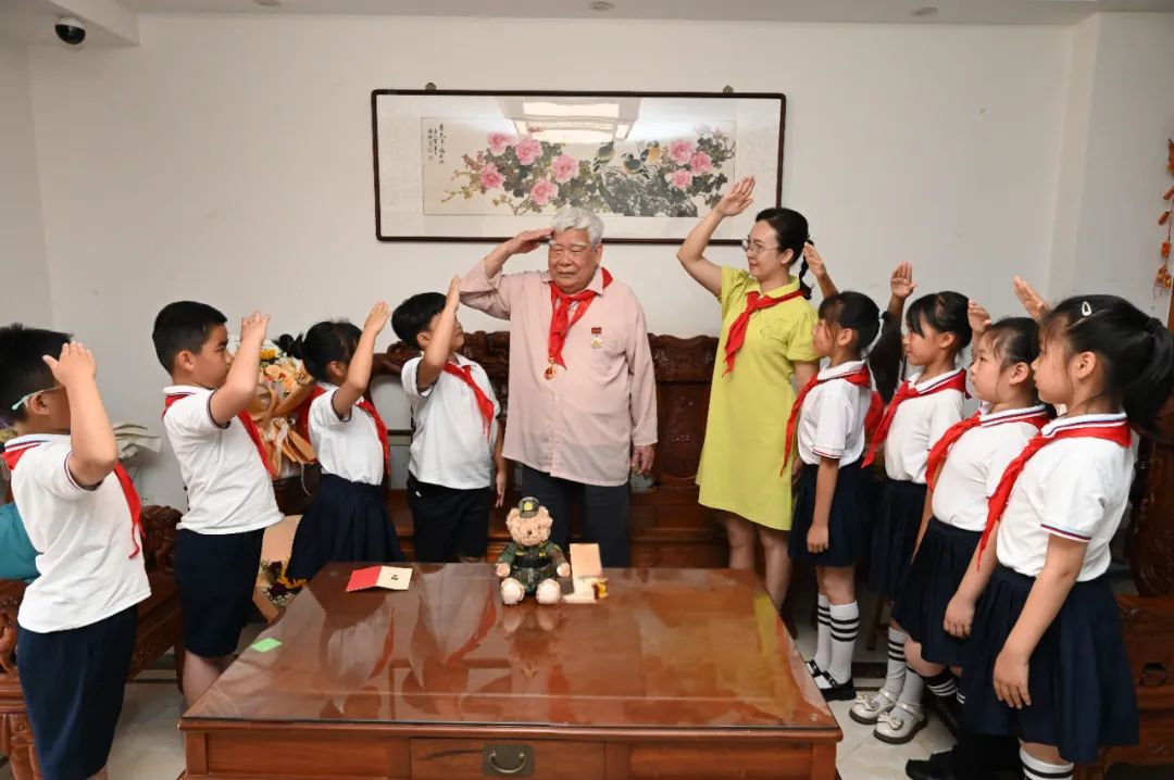 “长亭外,古道边……”暮色漫过窗棂时,队员黄亦依怀中的尤克里里淌出《送别》的旋律。“谢谢陈爷爷!”带队的大队辅导员陆艳莉老师望着老人与孩子们紧握的双手,轻声感慨:“这不是一次普通的课外活动,而是红色基因在嫁接年轮。”陆老师介绍,学校后续还将开展红色家书共读、老兵进校园等活动,让英雄精神化作润泽幼苗的春雨,滋养新一代的成长。
