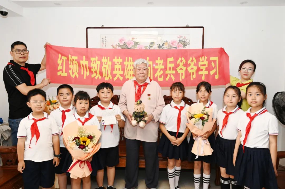“心怀感恩,喝水不忘挖井人!”近日,漳州市巷口中心小学的8名少先队员怀着崇敬之心,踏进了92岁抗美援朝老兵陈吉福的家中。在温馨的客厅里,二4中队杨向上同学将精心准备的礼物——一封字迹工整的慰问信和身着迷彩军装的布偶,郑重交到老英雄手中。陈老颤抖的双手轻轻摩挲着军装布偶,激动地说:“你们是祖国的未来和希望,让祖国变得更强大要靠你们了……”
