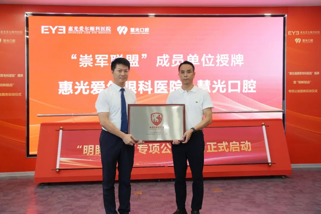 活动中,在场领导共同为“惠安县拥军专科医院”揭牌,并共同启动了“明眸皓齿”专项公益服务活动,随后县退役军人事务局领导为惠光爱尔眼科医院、慧光口腔授予“崇军联盟”成员单位牌匾。活动结束后,惠光爱尔眼科医院、慧光口腔分别为退役军人代表进行免费眼科、口腔专项健康检查诊疗。