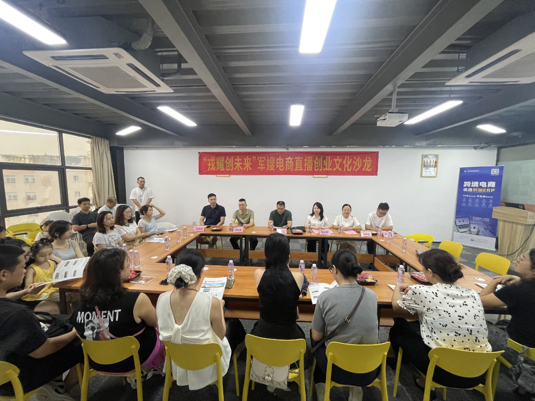 为进一步拓宽军嫂就业创业途径,7月9日,由泉州市双拥办、泉州师范学院继续教育学院主办,泉州市双拥学院、东海湾产教融合实训基地承办的“戎耀创未来”军嫂电商直播创业文化沙龙在东海跨境电商生态圈举行。