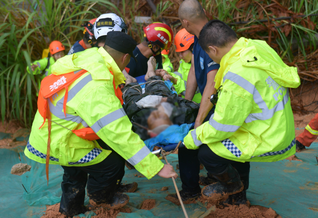 好不容易将担架抬至相对平缓处,又出现了新问题。原来,从坡顶到救护车停车点尚有近1公里路,陡峭狭窄,多数地段仅容一人通过,并且大雨冲刷过的路面湿滑异常,乱石坑密布。救援人员硬着头皮,一前一后接力抬担架,深一脚浅一脚地在泥泞与乱石间艰难地挪动。