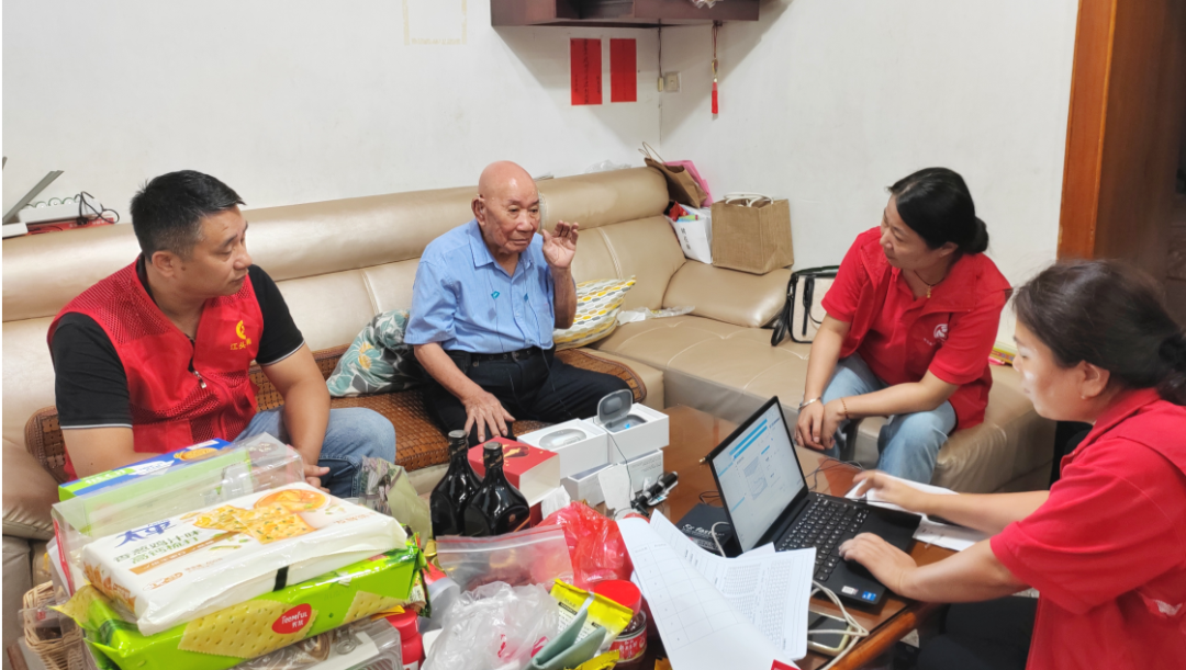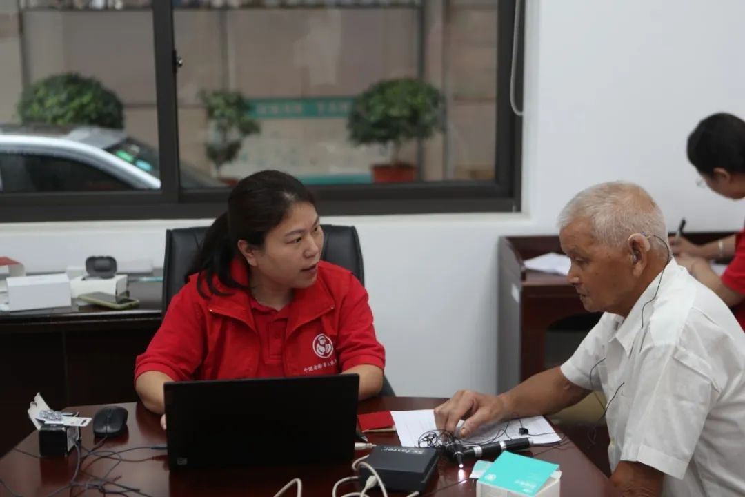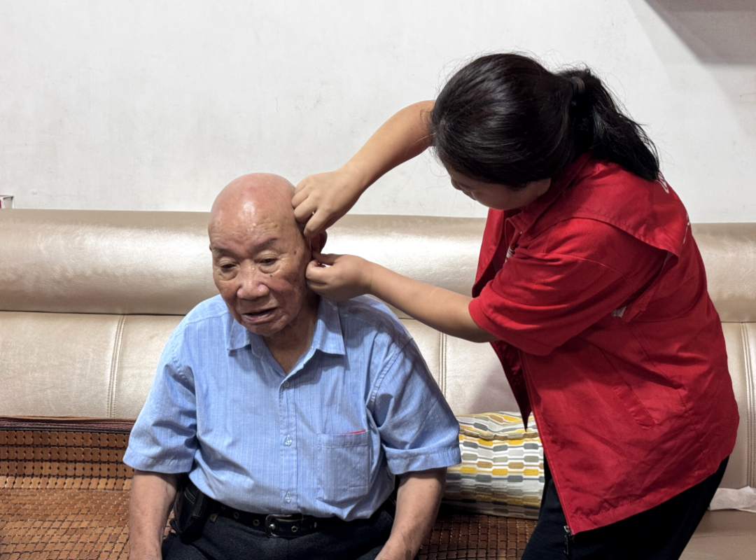 验配助听器当日,厦门受台风影响暴雨不断,工作人员来到夏老家中,家属充当起临时“翻译”,向老人传达工作人员话语,经过几番测试和调试,工作人员最终为老人验配好助听器。