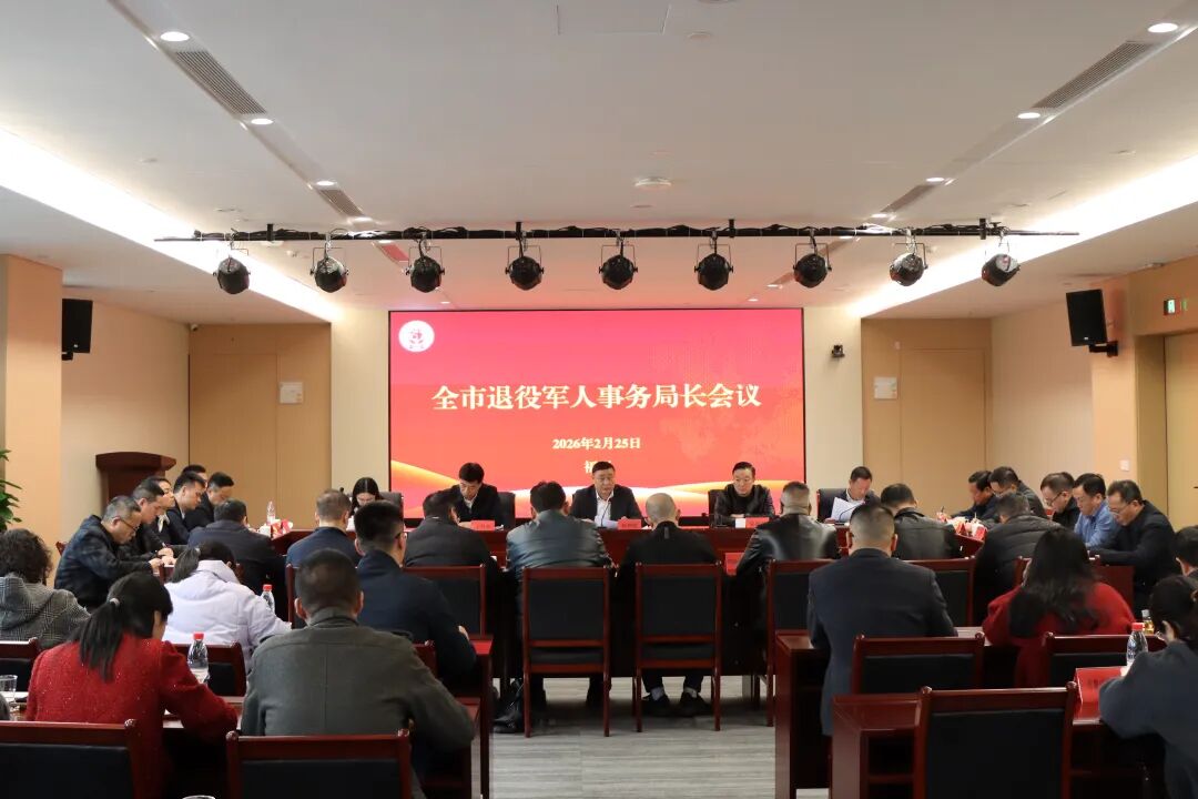 2月25日,福州市召开全市退役军人事务局长会议。会议全面贯彻习近平总书记关于双拥共建、退役军人工作重要论述精神,认真落实全国、全省退役军人事务局长会议和福州市开展“深学争优、敢为争先、实干争效”持续推进“奋勇争先”行动总结部署会精神,回顾2025年主要成效,部署2026年重点工作。