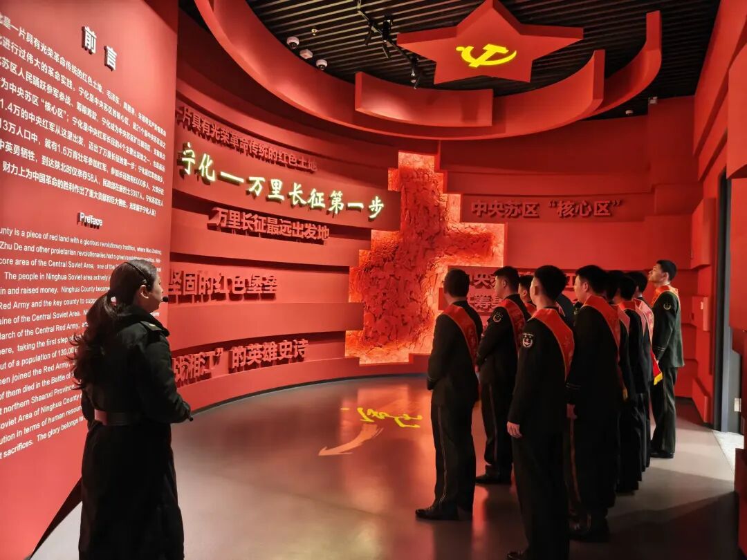 在宁化县长征精神教育基地,退役士兵们身着统一军装,精神抖擞地跟随讲解员,依次参观《宁化——万里长征第一步》主题展与《军号嘹亮——中国红色军号陈列》专题展。珍贵的革命文物、详实的历史图片、生动的场景复原,全景展现了宁化作为中央红军长征最远出发地的峥嵘岁月,以及革命先辈们浴血奋战、无私奉献的崇高精神。当驻足于馆藏国家一级文物《中国工农红军军用号谱》前,聆听宁化3307名在册烈士的英勇事迹时,学员们深受震撼,纷纷驻足瞻仰、认真记录。现场还开展了重温军人誓词活动,铿锵有力的誓言回荡在展厅,彰显着退役军人“退伍不褪色、退役不褪志”的坚定信念。