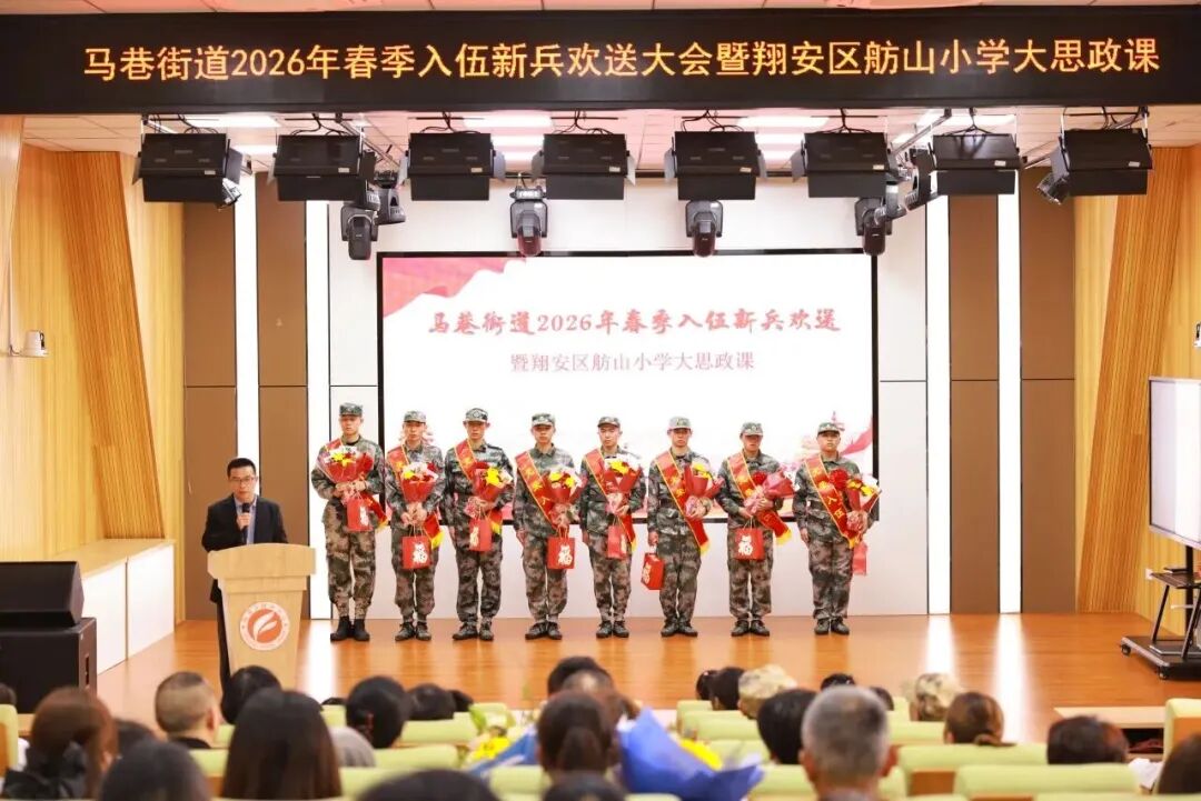 近日,厦门市梧村街道、嘉莲街道、马巷街道、大嶝街道、厦门华天涉外职业技术学院和厦门城市职业学院,举行2026年春季新兵入伍欢送会,为即将奔赴军营的从军青年送上真挚祝福,嘱咐他们在军营大熔炉中淬炼成钢,练就过硬本领。