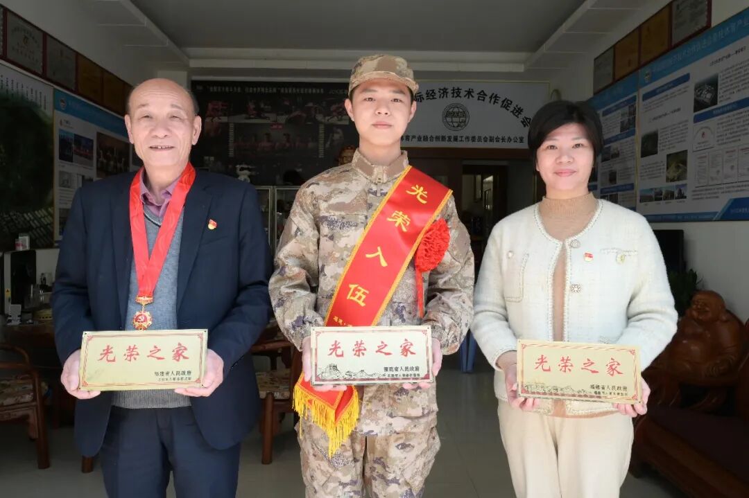 在诏安县,新兵陈星宇的选择同样延续着家族的血脉。母亲吴瑞华曾在海军服役,爷爷陈国荣是1968年入伍的老兵,外公吴成龙1971年入伍,当过班长、入了党。三块“光荣之家”的牌匾,见证了这个家庭跨越半个多世纪的军旅传承。