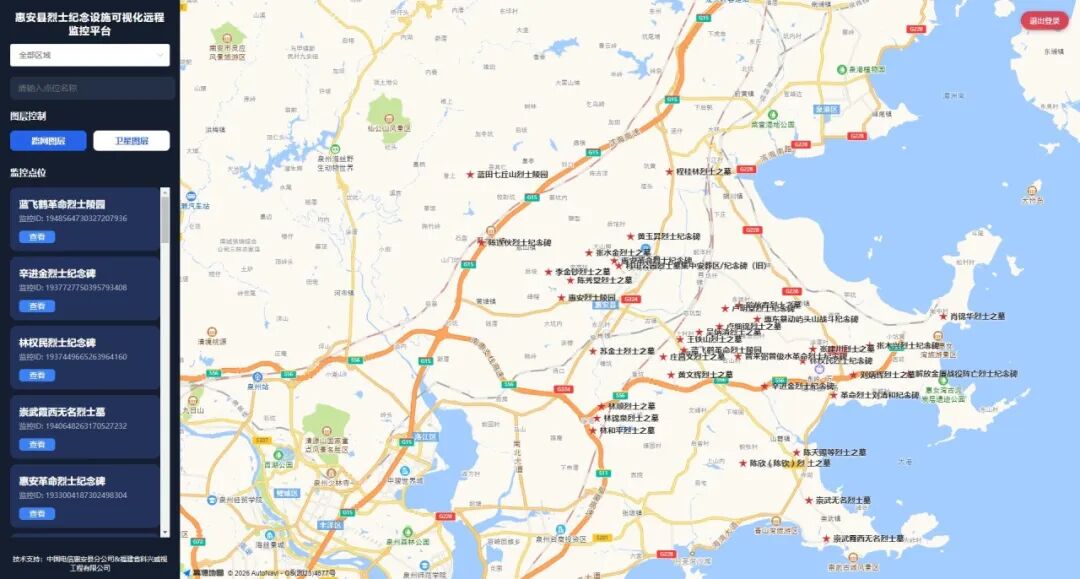 这是惠安县烈士纪念设施“三可”管护机制中,最关键的一招——“现场可视”带来的新变化。2025年,惠安县退役军人事务局投入37.5万元,为37处有条件的烈士纪念设施安装监控,并将其与已有的部分监控,共同纳入“可视化”监控体系。通过高清摄像头和智能平台,实现了对全县烈士纪念设施全天候、无死角的“云巡护”,确保每一处设施的环境状态尽在掌握。