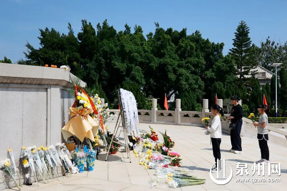 一些家长自发带着孩子到泉州市革命烈士陵园缅怀革命烈士。(石树停摄)