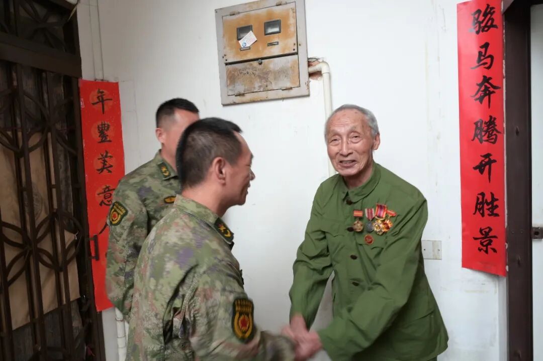 “老英雄,我们来看您了,陪您一起迎接战友回家!”4月22日上午,漳州市芗城区人武部官兵走访慰问93岁的抗美援朝老兵谢云吾时,两代军人的一个军礼,让整个小区暖意融融。