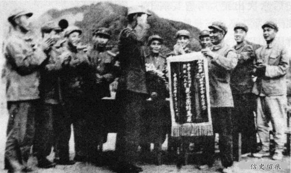 76师师长陈忠梅向朝鲜人民军赠送锦旗