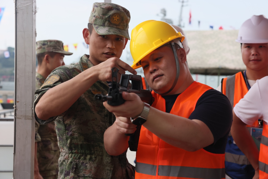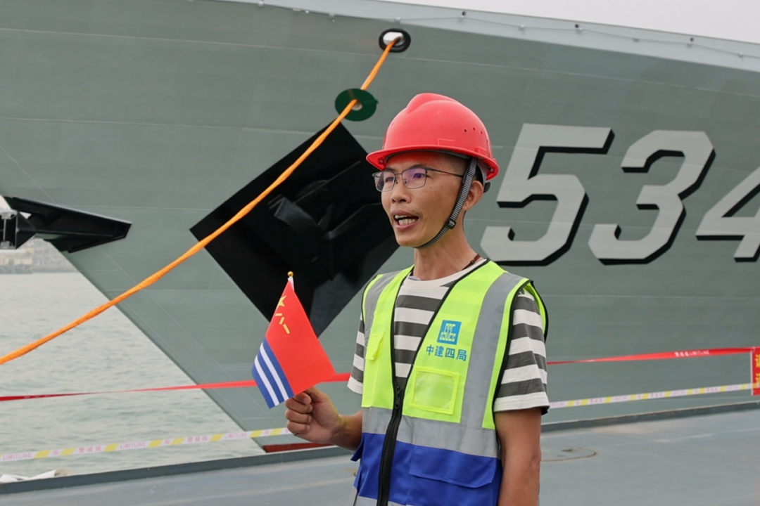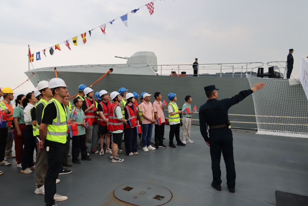 参观人群中,来自中建四局的工人王师傅首次登上海军战舰,他无比感慨:“今天是我最开心的一天,虽然参与过许多部队工程建设,但一直没有机会登上战舰参观。这次受邀参观,终于圆了我的梦想,也更能理解军人担负的使命和责任,虽然我们岗位不同,但祝福人民海军日益强大,是我们共同的心愿。”