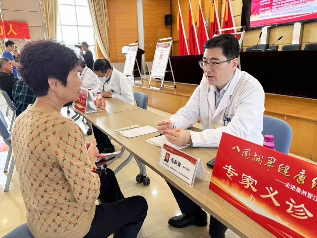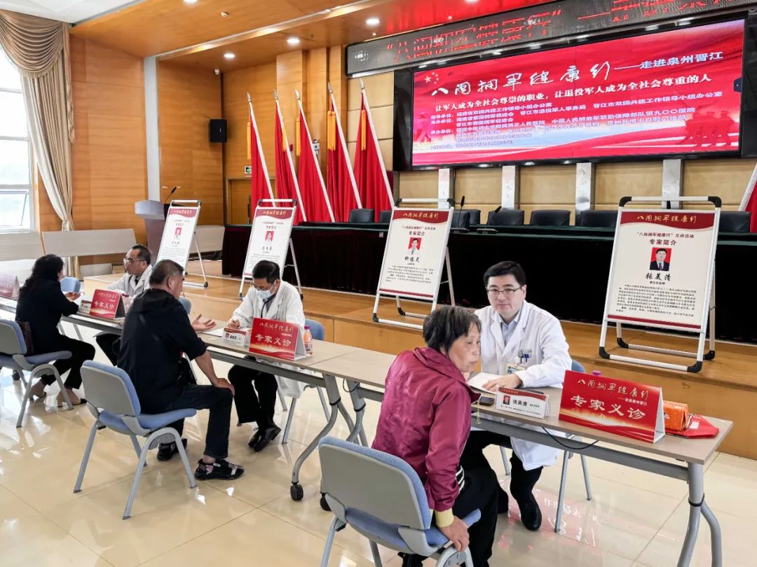 4月16日,由福建省双拥共建工作领导小组办公室指导,福建省爱国拥军促进会、晋江市退役军人事务局、晋江市双拥共建工作领导小组办公室、晋江市爱国拥军促进会联合主办的“八闽拥军健康行——走进泉州晋江”活动第三次走进晋江为军人军属、退役军人及家属、烈军属和其他优抚对象开展早癌筛查、中医康复理疗、眼健康治疗、牙科保健、高血压主心脑血管疾病义诊活动。