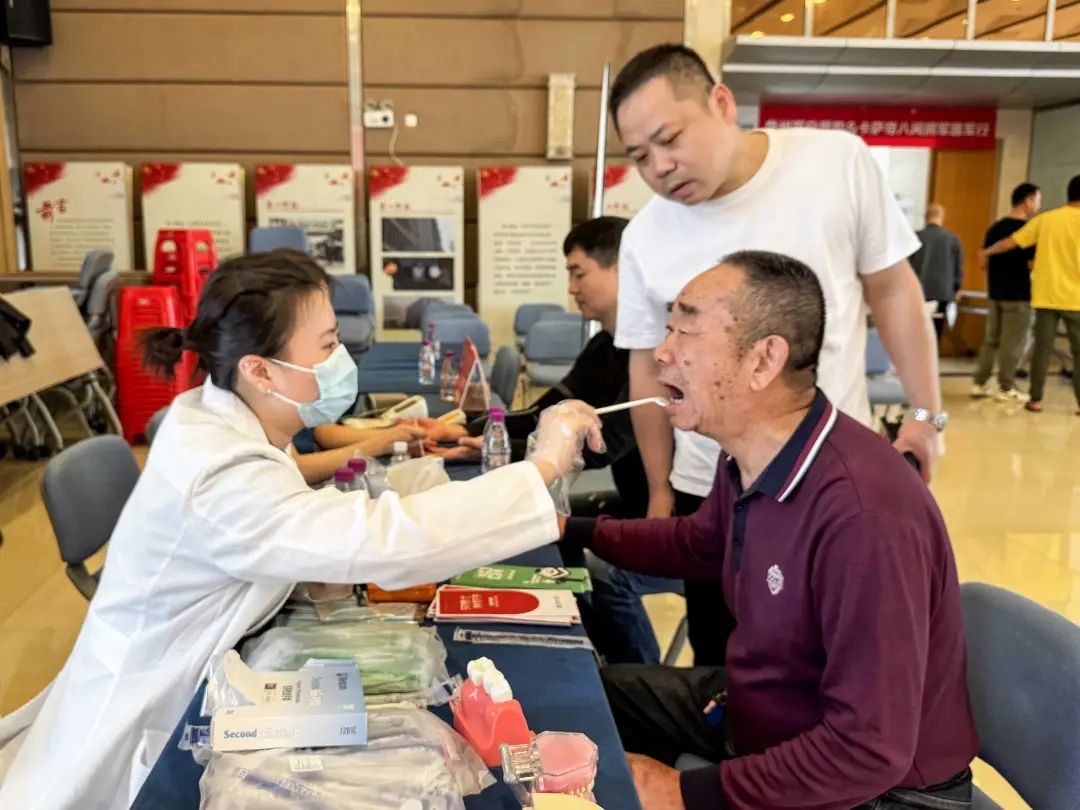 活动现场,晋江市退役军人事务局志愿者提供移交安置、就业创业、优抚褒扬、拥军优属政策咨询,开展国家安全教育、平安晋江及军民共建社会主义精神文明宣传;晋江市爱国拥军促进会现场推广和普及“拥军优属联盟小程序”的使用方法;晋江宝龙苏宁易购现场免费洗洁衣被服务,优惠咨询及茶点,向参加义诊对象宣传介绍了家电置换如何获得国家补贴,提供了免费清洗空调和抽油烟机清洗(登记后上门服务);牙博士门诊部向现场人员赠送伴手礼及口腔护理保健宣传材料,赠送了免费洗牙服务,免费为参加义诊对象测量血压及血糖。当天活动共完成113人CT早癌筛查,义诊316人次。