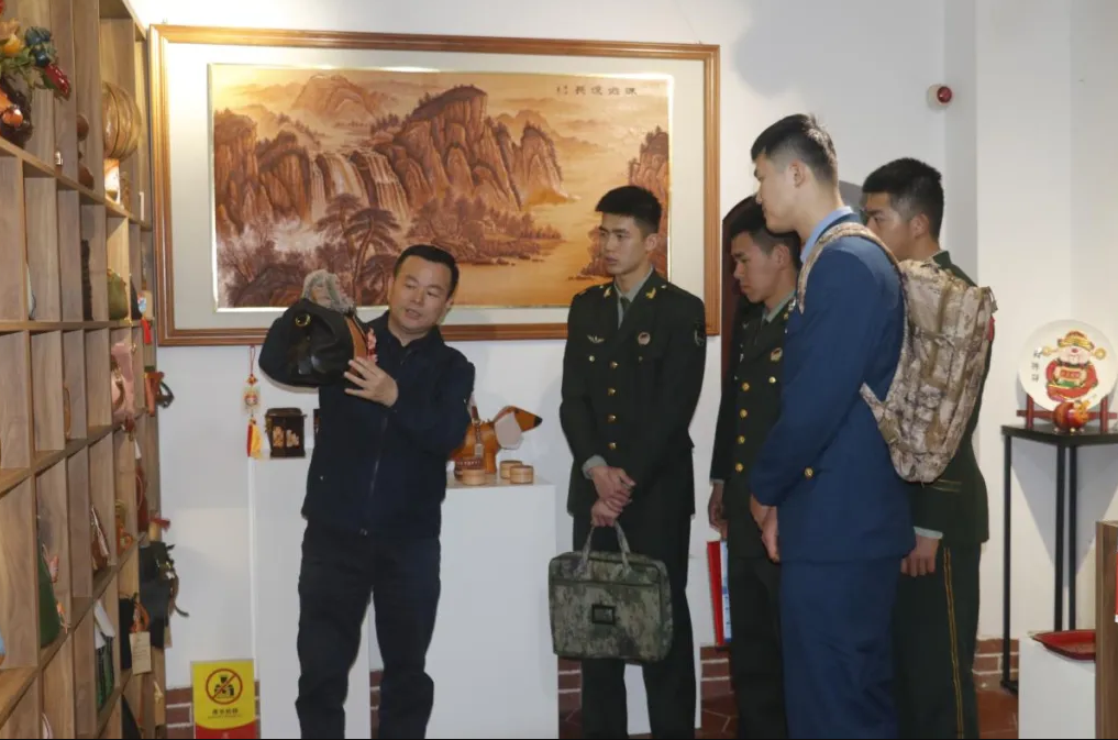 近日,莆田市荔城区退役军人事务局联合中国工艺美术学会兆丰(福建)新材料有限公司“皮雕技艺”游学基地,推出“老班长带老兵”传承非遗技艺活动。