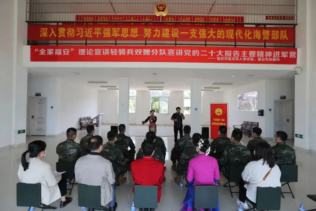 10月19日,“全家福安”理论宣讲轻骑兵双拥分队走进宁德海警局福安工作站,宣讲党的二十大精神。