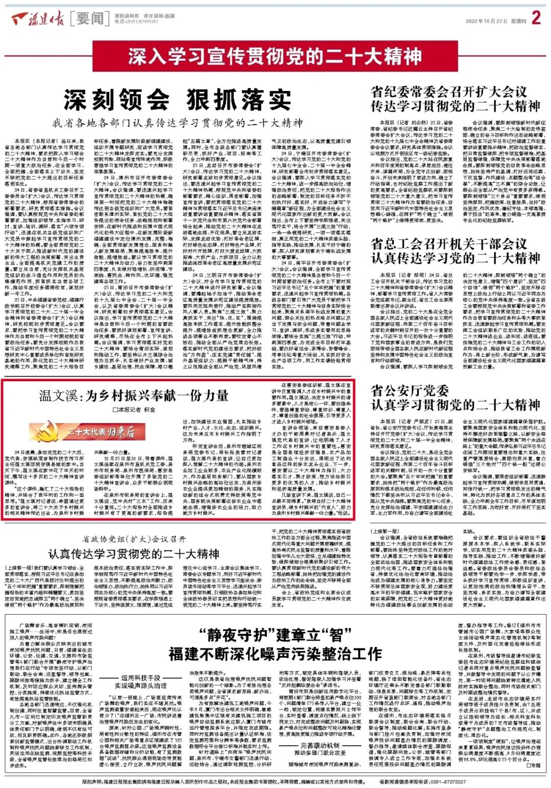 听完宣讲会后,泉州市鲤城区税务局党委书记、局长张美雪对记者说,温文溪代表的宣讲,让自己更加深入理解党的二十大精神的内涵。泉州农业加工企业较多,农业产业化规模较大,作为基层税务部门,要从国家乡村振兴战略的高站位出发,为泉州涉农企业提供更加精细的服务,扎实推动新的组合式税费支持政策等党中央、国务院决策部署在涉农企业中落地生根,增强涉农企业的活力,助力地方乡村振兴。