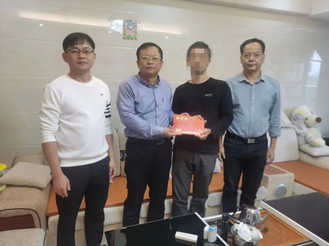 11月8日,在华安县退役军人蔡某鹏家庭,县退役军人局负责人首先转达了退役军人事务部、中国教育发展基金会寄出的慰问信,并与助学对象及其家人座谈交流,详细了解其家庭经济、生活和学习情况,送上助学金5000元。