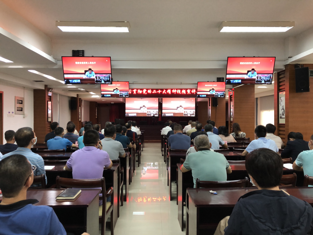 莆田市退役军人事务局组织局领导,全市优秀退役军人代表以及各科室、直属各单位负责人,共同集中收听收看学习贯彻党的二十大精神宣讲会。局领导和机关干部纷纷表示,要把学习贯彻党的二十大精神作为当前和今后一个时期的首要政治任务,带头学习、带头宣讲、带头调研、带头践行,引导全局上下兴起“大学习”热潮,带动全局干部职工立足岗位、扎实工作、奋发有为。