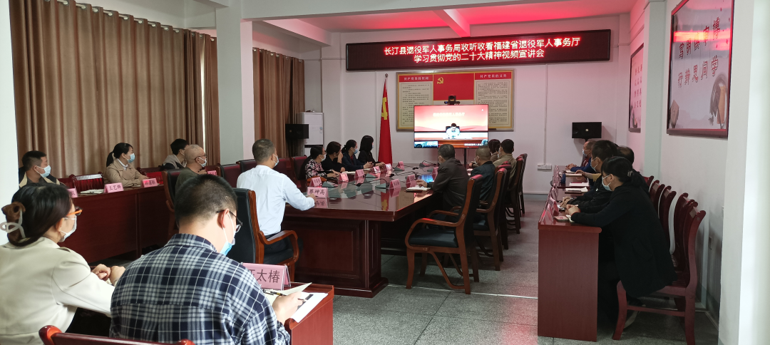 南平市退役军人事务系统组织干部职工收听收看学习贯彻党的二十大精神视频宣讲会。局党组书记、局长谢金润强调,罗厅长为全省退役军人事务系统做的宣讲具有很强的指导性,对全系统深入学习贯彻党的二十大精神具有重要推动作用。全市退役军人事务部门要迅速掀起学习宣传贯彻党的二十大精神热潮,深刻把握党的二十大的重大意义、重要精神、重点要求,以党的二十大精神为指引推动退役军人事务工作提质增效。