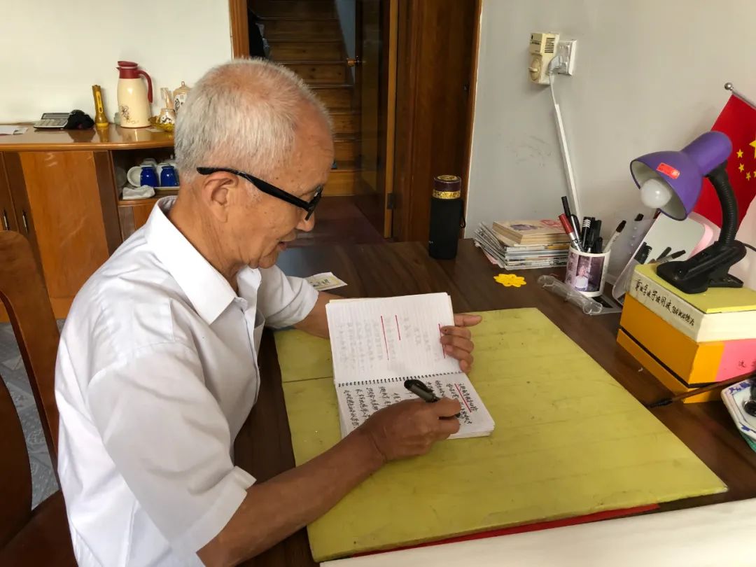 自入党以来,每天收藏有关党史资料、报刊,毛主席像章和学习笔记成为了他的日常。我们从他妻子那里得知,鲍荣昌老人一年要用掉30多支水笔,无论严寒酷暑从不间断,有时候睡觉刚起来就趴在桌子上开始写。