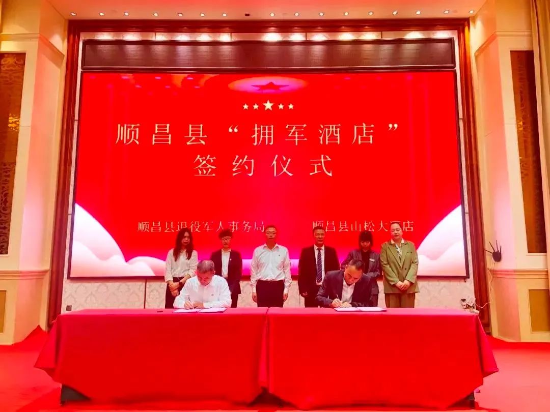 南平市顺昌县退役军人事务局与福建省顺昌宏俊山松酒店有限公司山松大酒店签订拥军优属协议,为现役军人、退役军人和其他优抚对象提供消费折扣、客房升级、延时退房、招聘等优惠优待措施,现役军人、退役军人和其他优抚对象凭相关证件即可办理入住,享受相应折扣优惠。