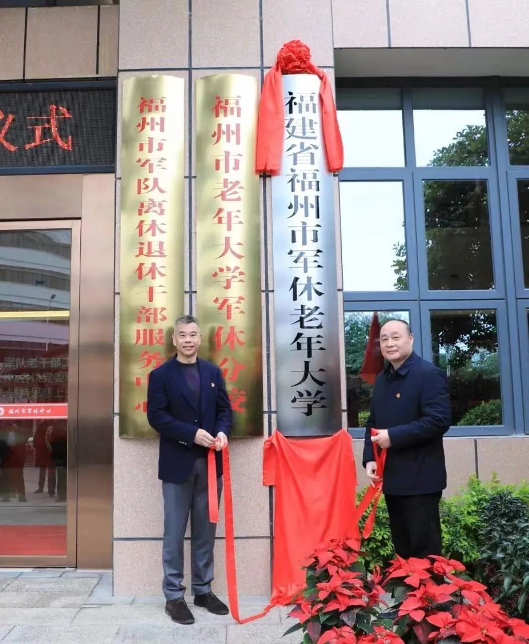 12月15日,福州市军休老年大学揭牌仪式在福州市军休中心举行,省退役军人事务厅党组成员、副厅长陈浩,福州市退役军人事务局党组书记、局长、福州市双拥办主任张则铭共同为军休老年大学揭牌。福州市军休老年大学系退役军人事务部批准成立的我省首家军休老年大学,这标志着我省军休干部“老有所学、老有所乐”的服务保障水平跃上一个新的台阶。据了解,福州市军休老年大学在前期广泛征求军休干部意见建议的基础上,将开设智能手机、书法、绘画、舞蹈、合唱等课程,切实满足军休干部多样化的文化娱乐需求。
