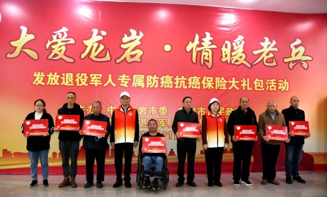 12月11日,“大爱龙岩·情暖老兵”——发放退役军人专属防癌抗癌保险大礼包活动在龙岩市退役军人服务中心举行,为低保和特困退役军人代表发放退役军人专属防癌抗癌保险大礼包。当天,永定、上杭、长汀、武平、连城、漳平等6个县(市、区)同步开展活动。